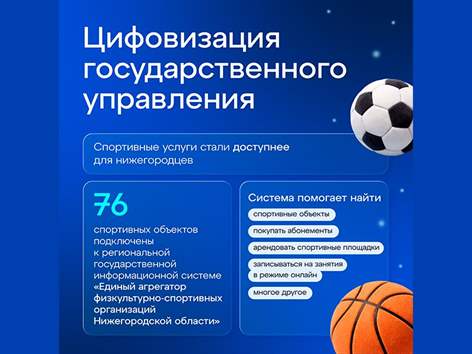 С порталом «Карта жителя Нижегородской области» интегрирована региональная ГИС «Единый агрегатор физкультурно-спортивных организаций Нижегородской области», к которой подключены 76 нижегородских спортивных объектов (44 из них подключились в прошлом году). Возможности платформы позволяют нижегородцам находить нужные спортивные объекты, покупать абонементы, арендовать спортивные площадки, записываться на занятия онлайн и многое другое.