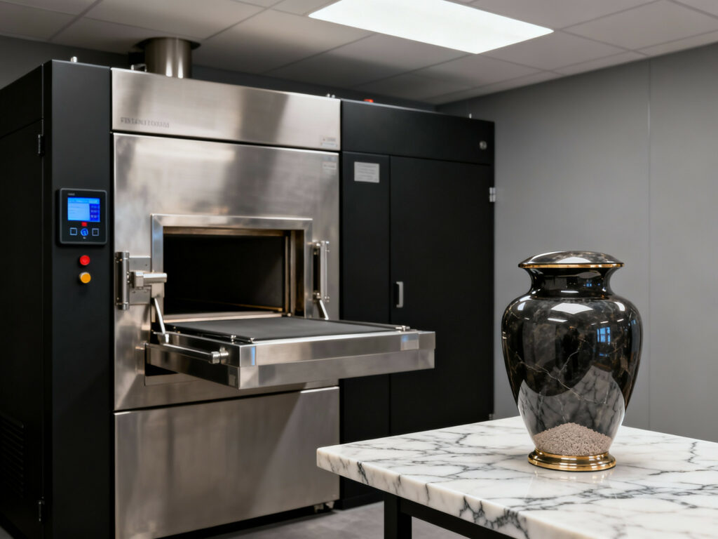 Кремация сжигает тело в специальной печи. Температура достигает 900-1000°C. Получают 2-3 кг праха.